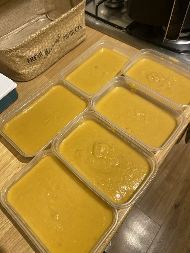 - Once cooked, blend the soup using a hand blender to give a nice creamy consistency