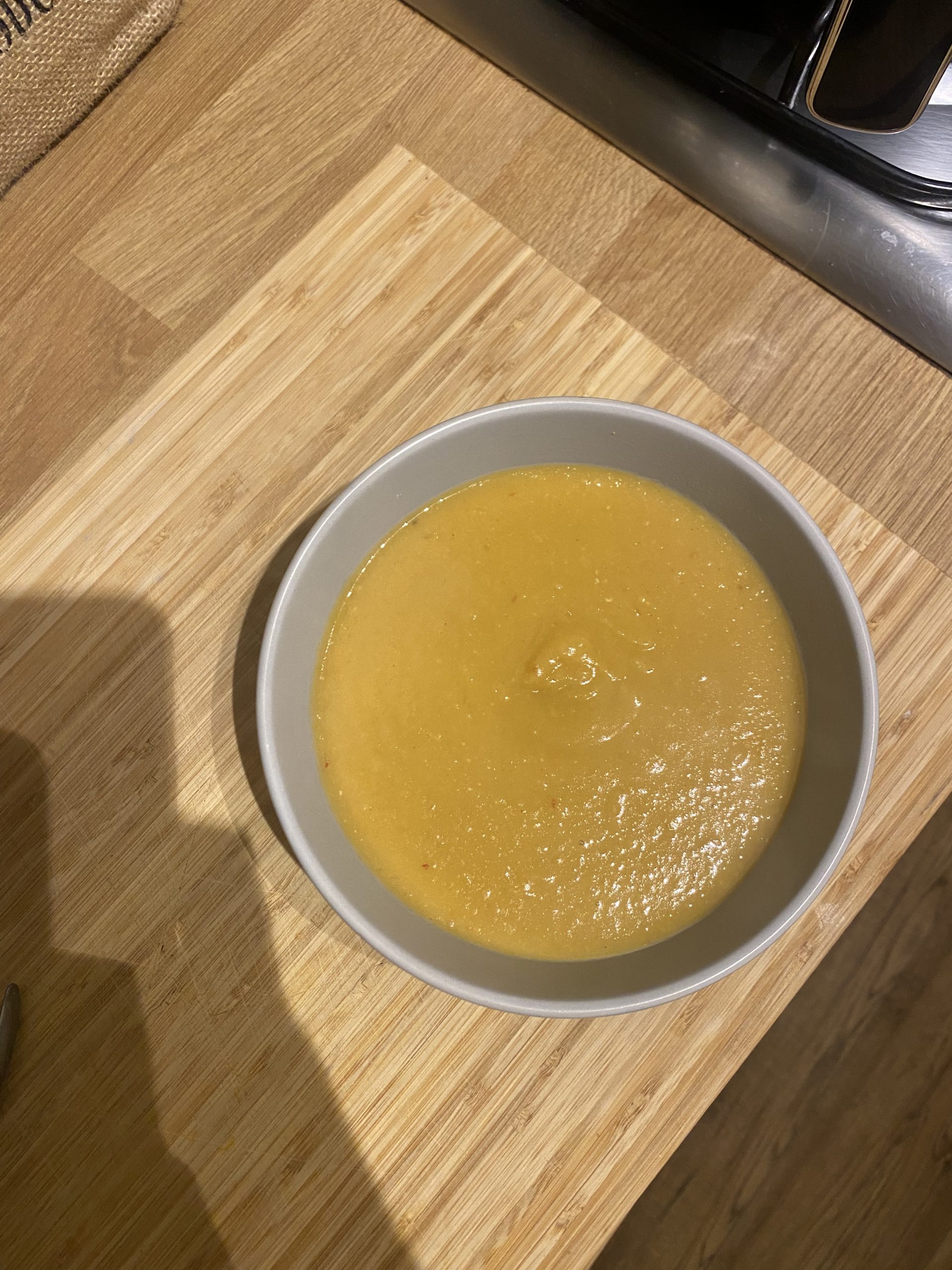 A swirl of coconut milk brings everything together, giving the soup a rich, velvety texture without the need for cream. Once blended, it becomes wonderfully smooth and satisfying — a wholesome bowl of comfort with a gentle kick of spice.